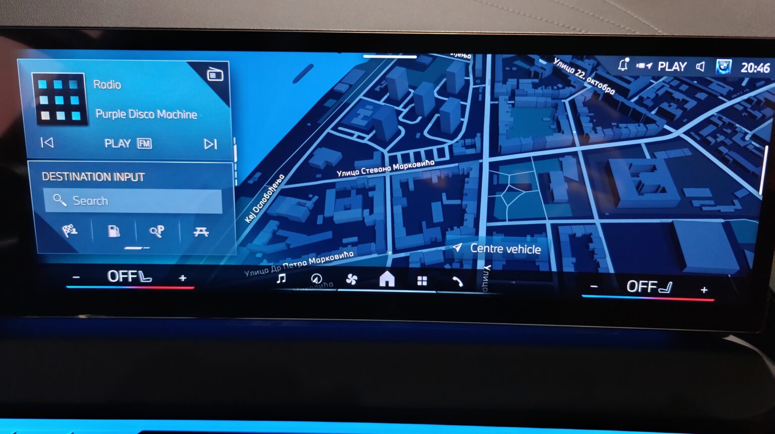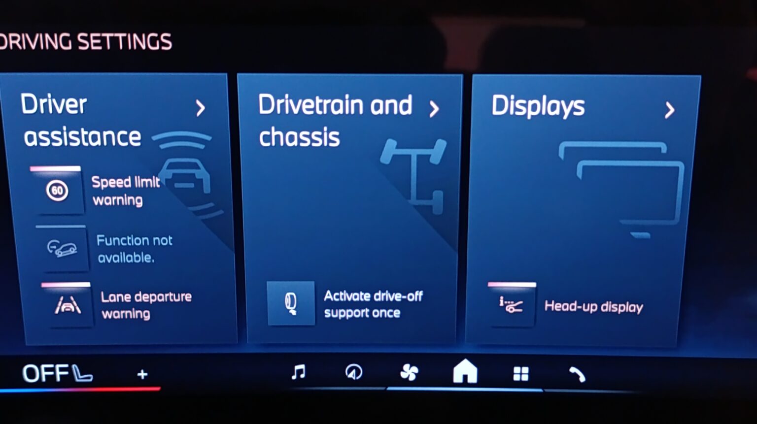 Opet u vožnji morate da gledate u ekran! Istina, imate taster-prečicu na centralnom grebenu koji će vam na centralnom ekranu odmah otvoriti meni za podešavanje većeg broja postavki vozila, ali, za dalji ulazak u odgovarajući podmeni, kao i za sam konačan izbor postavke, sve mora da se obavlja isključivo taktilno. Treba vam nekoliko vezanih klikova. Dok vozite.