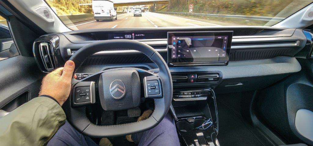 Standardna postava podrazumeva da se s desne strane nalazi centralni ekran od 10,25 inča, nažalost ne i za osnovnu verziju You, gde se mora zadovoljiti držačem za smartfon (pogledajte fotografije crvenog C3), koji umesto ekrana prenosi sve neophodne informacije. Dakle u voženom završnom nivou Max pronađoh elegantan ekran visoke rezolucije, koji ne zaklanja pogled kroz vetrobransko staklo, jednostavno postavljen je na idealnoj visini.