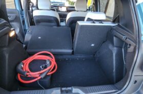 Trebalo bi reći i da je električna verzija spuštena za 34 mm, što će reči da je bliže tlu, klirens iznosi 163 mm. Zbog veće težine poradilo se i na kočnicama, umesto doboša kod benzinca, ovde ugledah diskove na zadnjim točkovima. Vožnjom izvan autoputa znatno je niža i potrošnja, opet u nedostatku putnog računara poslužit ću se nezavisnim merenjima, koja kažu da iznosi 17-18 kWh, kolika je i ukupna prosečna potrošnja.