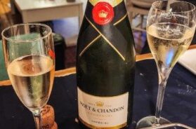 O cenama bolje da ne pričam, uostalom priložih fotografije pa pogledajte ukoliko vas interesuju. Šampanjac se podrazumeva (rekoh Šampanjac a ne penušavo vino, razlika je u tome što se u poslednji naknadno ubacuje gas, dok kod Šampanjca dolazi do prirodne fermatacije u flaši nakon tri godine stajanja u podrumu), upravo kao i raznovrsna bela i crna vina, no tu nema ništa svečano i neuobičajno, dole potpisani gotovo svako veče njima gasi nostalgiju i samoću.