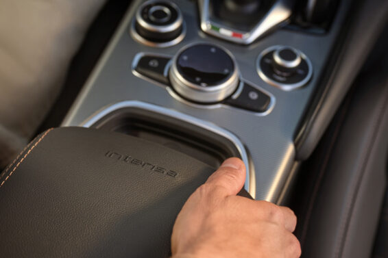 Unutrašnjost kombinuje materijale poput kože, alkantare i aluminijuma. Standardna oprema uključuje 12,3-inčnu digitalnu instrument tablu, 8,8-inčni ekran infotainment sistema i audio sistem Harman Kardon. Pogon je isti kao kod Stelvia: turbo četvorocilindrični motor sa 280 KS i pogonom na sva četiri točka.