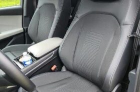 Ni upotrebljena plastika nije referentna, ima tu doste tvrde, pre svega na centralnoj ploči, kao i na vratima. Na gornjem delu, iznad isntrument table, je nekakvo platno, odnosno ispupčenje, ne izgleda loše, ovde su zapravo ugrađeni zvučnici čuvene marke B&O (Bang & Olufsen).