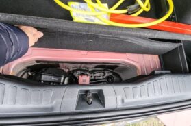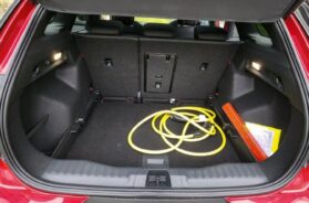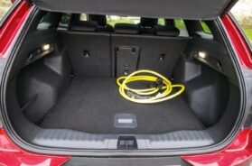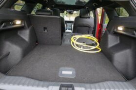 Za kraj ovog još par reči o prtljažniku, koji je u izvesnoj meri žrtvovan u korist prostora na zadnjoj klupi. Njegova maksimalna zapremina ne prelazi 470 litara (1.422 lit s oborenim naslonima zadnje klupe), osetno manje od gore navedenih konkurenata. Ako ništa drugo barem je praktičan, poseduje policu koja se podešava po vertikali, kako bi se poravnao nivo po obaranju naslona, kao i boks u samom dnu, gde je moguće odložiti kabel za punjenje.