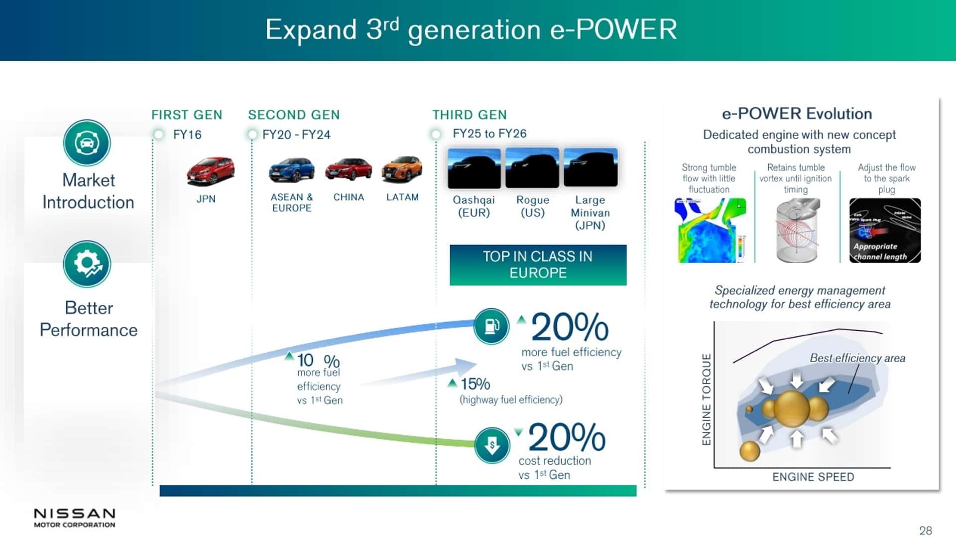 Uprkos Hondinom zahtevu, Nissan nastavlja da razvija svoju tehnologiju e-Power i priprema treću generaciju sistema. Prema nedavno objavljenom planu proizvoda, nova verzija e-Powera biće 20% efikasnija od prvobitne verzije iz 2016. godine, dok će potrošnja goriva na autoputu biti 15% niža u poređenju sa trenutnom, drugom generacijom. Takođe, Nissan planira da smanji proizvodne troškove za 20% u odnosu na prvi e-Power, koji je debitovao u modelu Note.