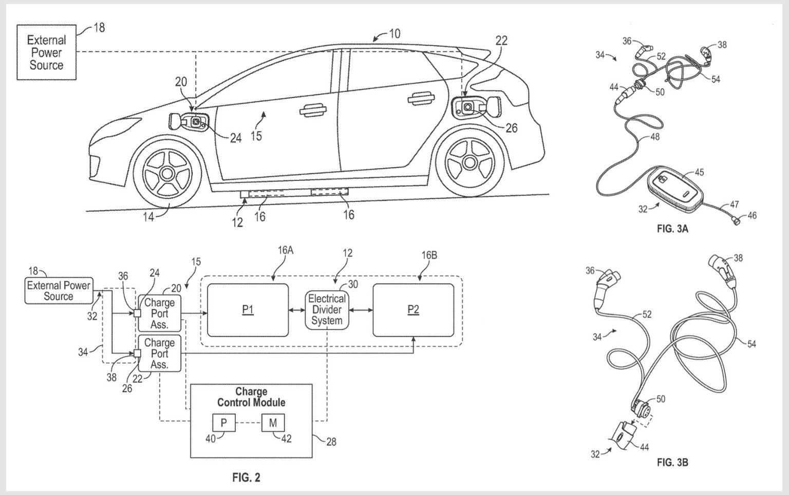 Taj patent je predan još 2021, naravno da nema ništa od toga jer je ideja glupa. To samo služi da netko tko nije ništa izumio napravi bilo kakv patent pa da se hvali eto ja nešto izumio. Koja je uopće prednost da struju iz kućnog punjača dijeliš na dvije utičnice ? Pa mogao si razvod napraviti unutar vozila da to nešto znači za brzinu punjenja. Na slici je focus 3 generacije i to prije redizajna, a baterija je mijaturna to znači da je netko to radio vjerojatno oko 2014 🙂