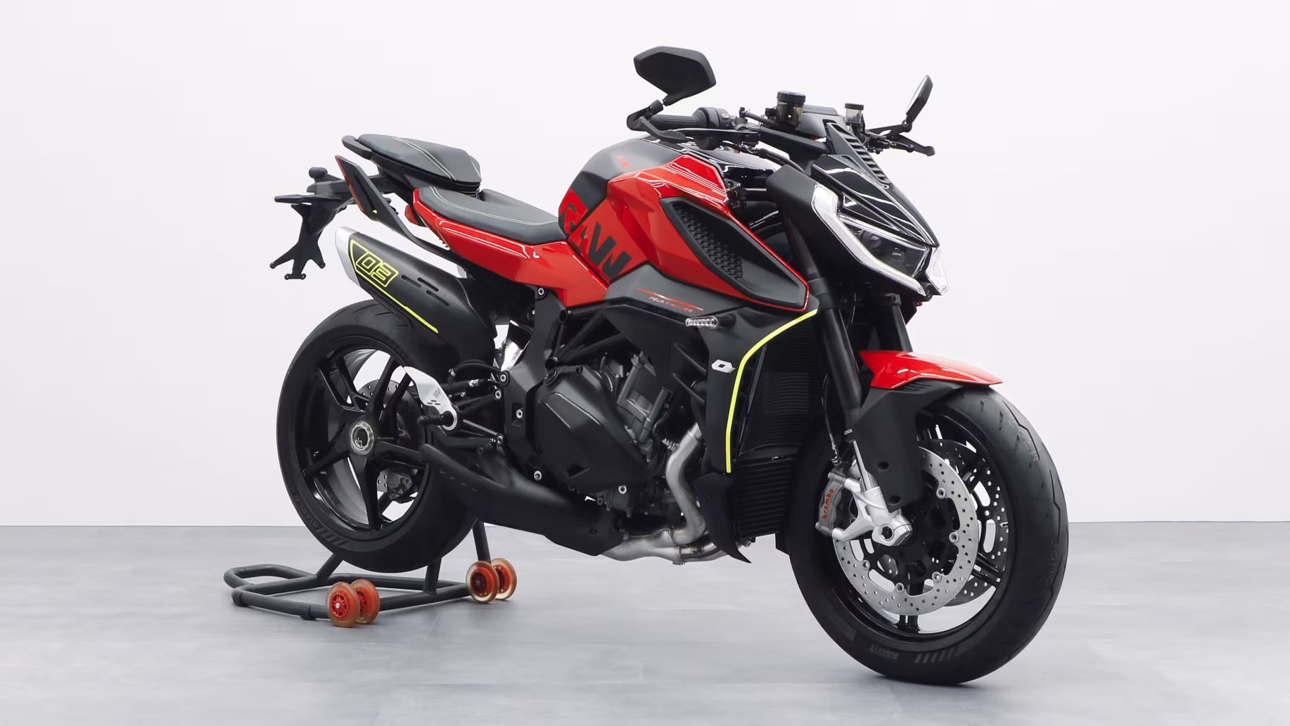 Obezbeđena je praktična rotirajuća ručica za predopterećenje opruge, a kočne čeljusti su Bremboove, dve radijalno ušrafljene napred sa po četiri klipa. Felne su izrađene od livenog aluminijuma i opet su deo serijske opreme, s gumama formata 120/70 ZR 17 napred i 180/55 ZR 17 pozadi.