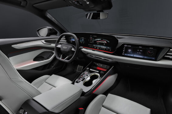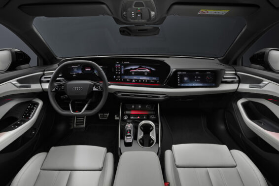 Enterijer je uređen u duhu najnovijih Audijevih vozila. Na instrument tabli se standardno nalaze dva ekrana u jedinstvenom zakrivljenom okviru:
