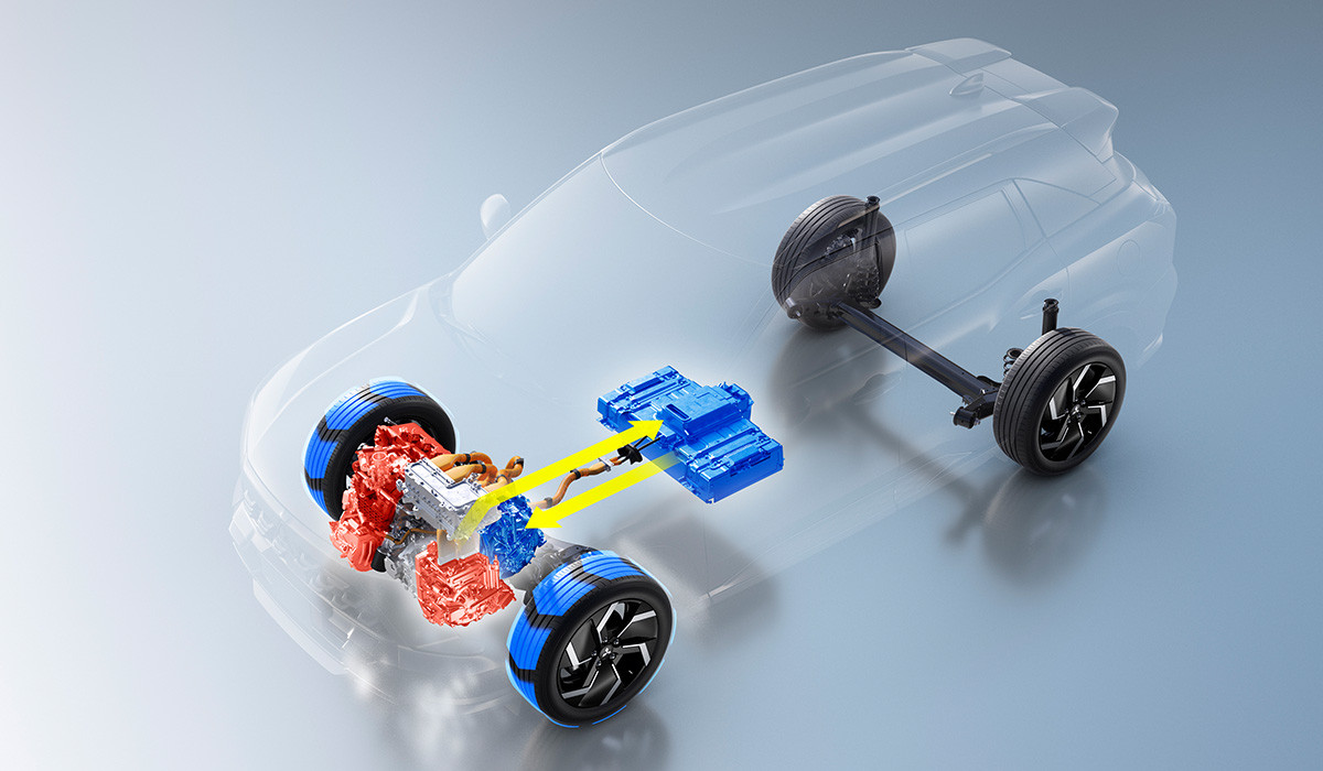 Vozilo ima prednji pogon, a glavni izvor snage je elektromotor (116 KS, 255 Nm). Start sa mesta i kretanje pri nižim brzinama odvijaju se isključivo na električni pogon. Benzinski motor – atmosferski 1.6 (95 KS, 134 Nm) – radi po Milerovom ekonomičnom ciklusu i većinu vremena funkcioniše kao generator, ali se pri visokim brzinama može direktno povezati sa točkovima.