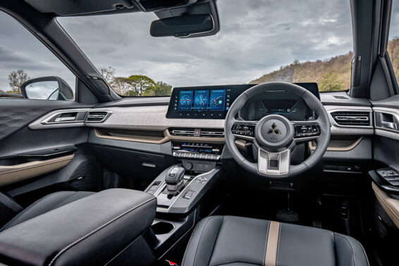 Spolja, hibridni Mitsubishi Xforce HEV se vizuelno razlikuje od benzinske verzije samo po dodatnim oznakama i novim 18-inčnim felnama. Deklarisani klirens iznosi 183 mm (naspram 222 mm kod benzinske verzije). U kabini su novi elektronski menjač bez fiksnih pozicija i drugačija grafika na digitalnoj instrument tabli. Ogibljenje (mekferson napred i polunezavisna zadnja osovina) je rekalibrisano, ali nije pretrpelo veće promene.