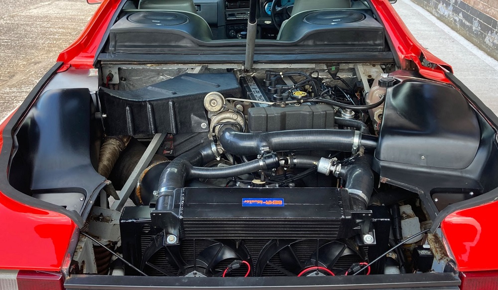 Motor je smjesten centralno pozadi, uzduzno.Djeluje mi kao da je neko uzeo pogon Siere 4×4 Kosvort i okrenuo ga naopacke.Noge putnika su jako gurnute prema napred, pa blatobrani kradu vecinu prostora.Kao kod naseg ficka.Uzduzni smjestaj motora zauzima jako mnogo prostora pozadi.Ferari i Lambordjini iz 70-ih su imali modele sa 4 sjedista i polozaj motora, poprecno, pozadi centralno.Njihovi v8 su zauzimali manje prostora nego ovaj.Izgleda su prvo uzeli raspolozivu mehaniku pa onda pravili kompromis sa kabinom i proporcijama.Unutrasnjost, kucni slamperaj.Sve pogresno.
