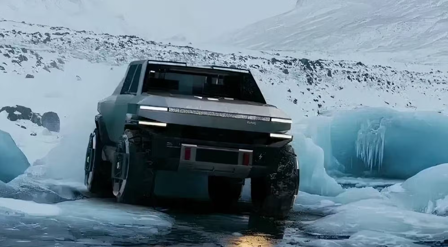 Spoljašnji izgled modela prati trend koji se može uočiti kod više koncepata elektropikapa: uglasta, gotovo geometrijska forma sa minimalnim ukrasima. Dizajn podseća na Cybertruck, ali nudi sopstvenu interpretaciju, sa izraženije podeljenim površinama i proporcijama koje deluju konvencionalnije. Prednji deo je zatvoren i aerodinamičan, dok je tovarni prostor funkcionalno izveden. Veliki točkovi i izraženi lukovi točkova naglašavaju terenske sposobnosti, a pomenuto je i vazdušno ogibljenje sa promenljivim klirensom.