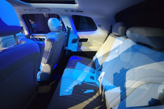 Unutrašnjost modela napravljena je po već poznatoj formuli. Ispred vozača nalazi se jednostavan ekran sa instrumentima, dopunjen projekcionim prikazom na vetrobranu. Međutim, u centru kontrolne table dominira 30-inčni multimedijalni ekran koji podseća na TV. Bord elektronika je dopunjena veštačkom inteligencijom. Posebno se ističe prostranost kabine: korisna unutrašnja dužina iznosi 3,7 metara, a visina 1,3 metra.