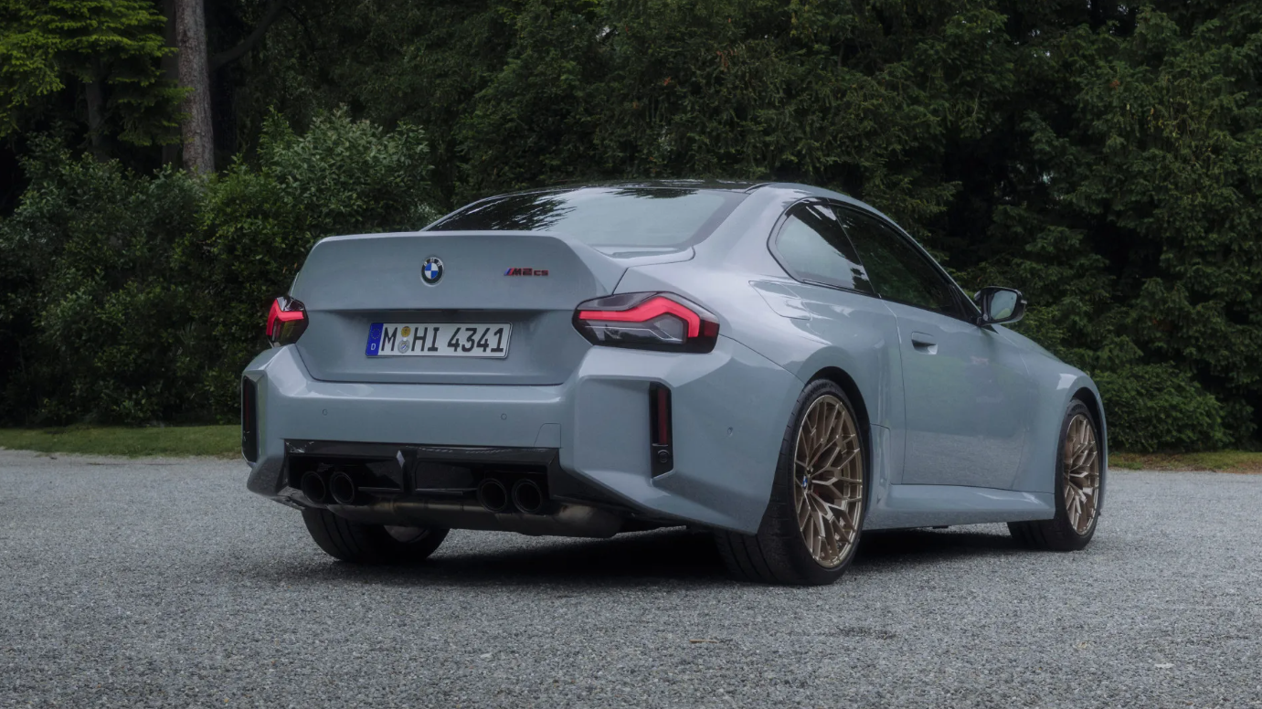 Osim izraženog spojlera „ducktail” iliti pačijeg repa, spoljašnjost M2 CS-a krase i sportske felne sa mrežastim krakovima, urađene u nijansi koja liči na svetlu bronzanu boju. Usisnici za vazduh na prednjem branikom deluju slični kao kod standardnog modela, mada su bočni donji otvori izgleda drugačije postavljeni, verovatno radi boljeg protoka vazduha preko ključnih komponenti.