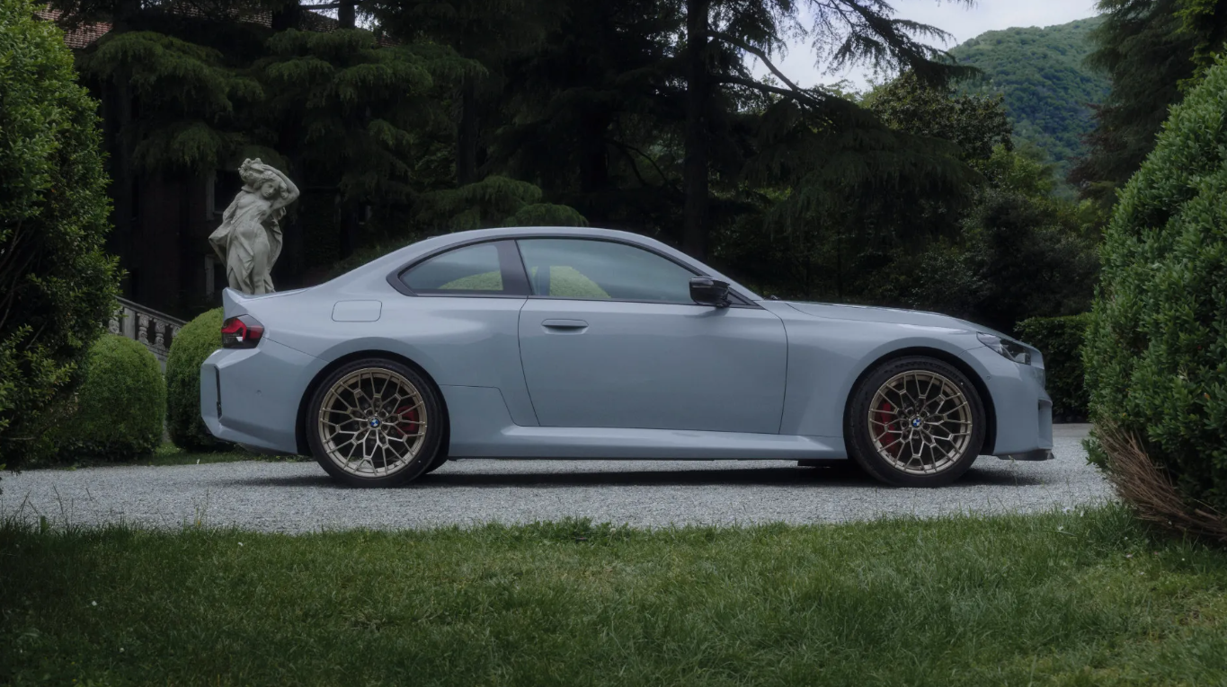 Osim izraženog spojlera „ducktail” iliti pačijeg repa, spoljašnjost M2 CS-a krase i sportske felne sa mrežastim krakovima, urađene u nijansi koja liči na svetlu bronzanu boju. Usisnici za vazduh na prednjem branikom deluju slični kao kod standardnog modela, mada su bočni donji otvori izgleda drugačije postavljeni, verovatno radi boljeg protoka vazduha preko ključnih komponenti.