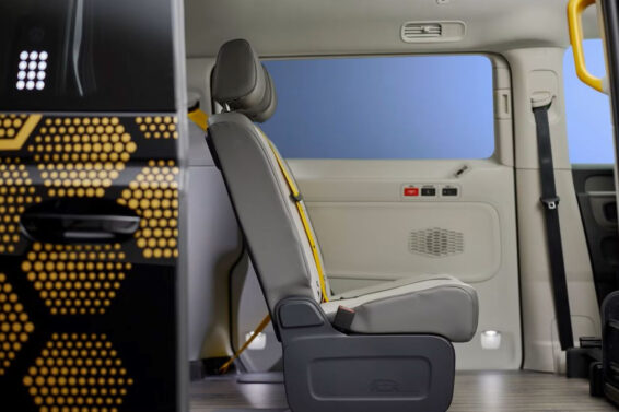 Pozivanje bespilotnog ID. Buzza AD obavlja se pomoću iste onlajn-aplikacije Moia koja se već koristi za rajdšering. Za lakši ulazak u vozilo predviđene su dodatne ručke. U kabini se nalaze četiri sedišta za putnike, pri čemu svako ima sopstveno dugme za pozivanje podrške i AI asistenta. Umesto suvozačkog sedišta nalazi se prostor za prtljag, dok je vozačko mesto ipak zadržano – kao i volan, iako je prekriven zaštitnim poklopcem.