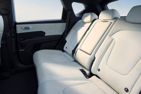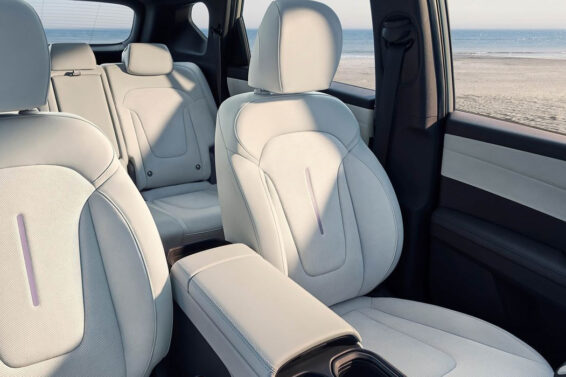 Selektor prenosa nalazi se na stubu volana, a iza volana su paddle komande za upravljanje rekuperacijom. Središnji tunel je, s druge strane, bogato opremljen – tu su držači za čaše, podloge za bežično punjenje, i ukupno 29 pregrada za odlaganje sitnica po celom kabini. Prtljažnik ima zapreminu 506 litara.