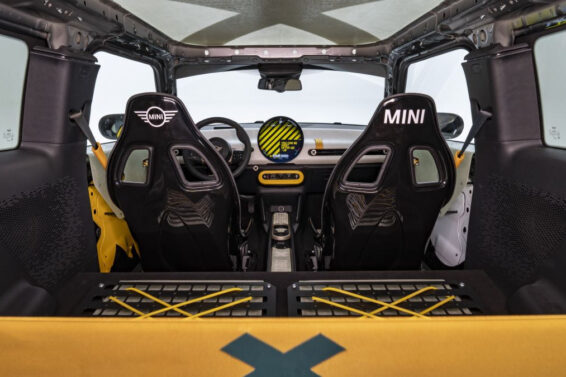 Unutrašnjost modela The Skeg ostala je bez većeg dela klasične obloge, ali je dobila nekoliko praktičnih dodataka za surfere. Na primer, sportska sedišta presvučena su nepromočivim neoprenom, predviđeni su posebni odeljci za odlaganje odela za surfovanje i police za drugu opremu. U kabini su našle primenu i brojne stakloplastične površine. Tehničkih izmena nema: električni Mini John Cooper Works i dalje koristi jedini elektromotor na prednjoj osovini, koji razvija 258 KS i 350 Nm. Kapacitet baterije je 54,2 kWh.