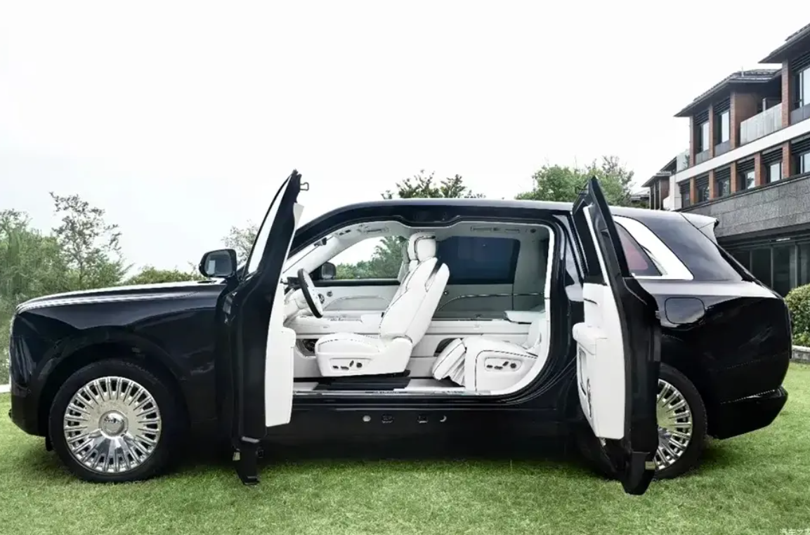 Novi SUV preuzima mnoge dizajnerske elemente sa modela Cullinan, uključujući veliku hromiranu masku, LED farove i jednostavne linije. Upadljiva su i ogromna sjajna felna, uvučene kvake na vratima i zadnja vrata koja se otvaraju suprotno od smera vožnje. Posebno zanimljiv detalj je izostanak B-stubova, što naglašava luksuzni karakter i lakši ulazak u kabinu – ali ostavlja otvorena pitanja o bezbednosti pri sudaru.
