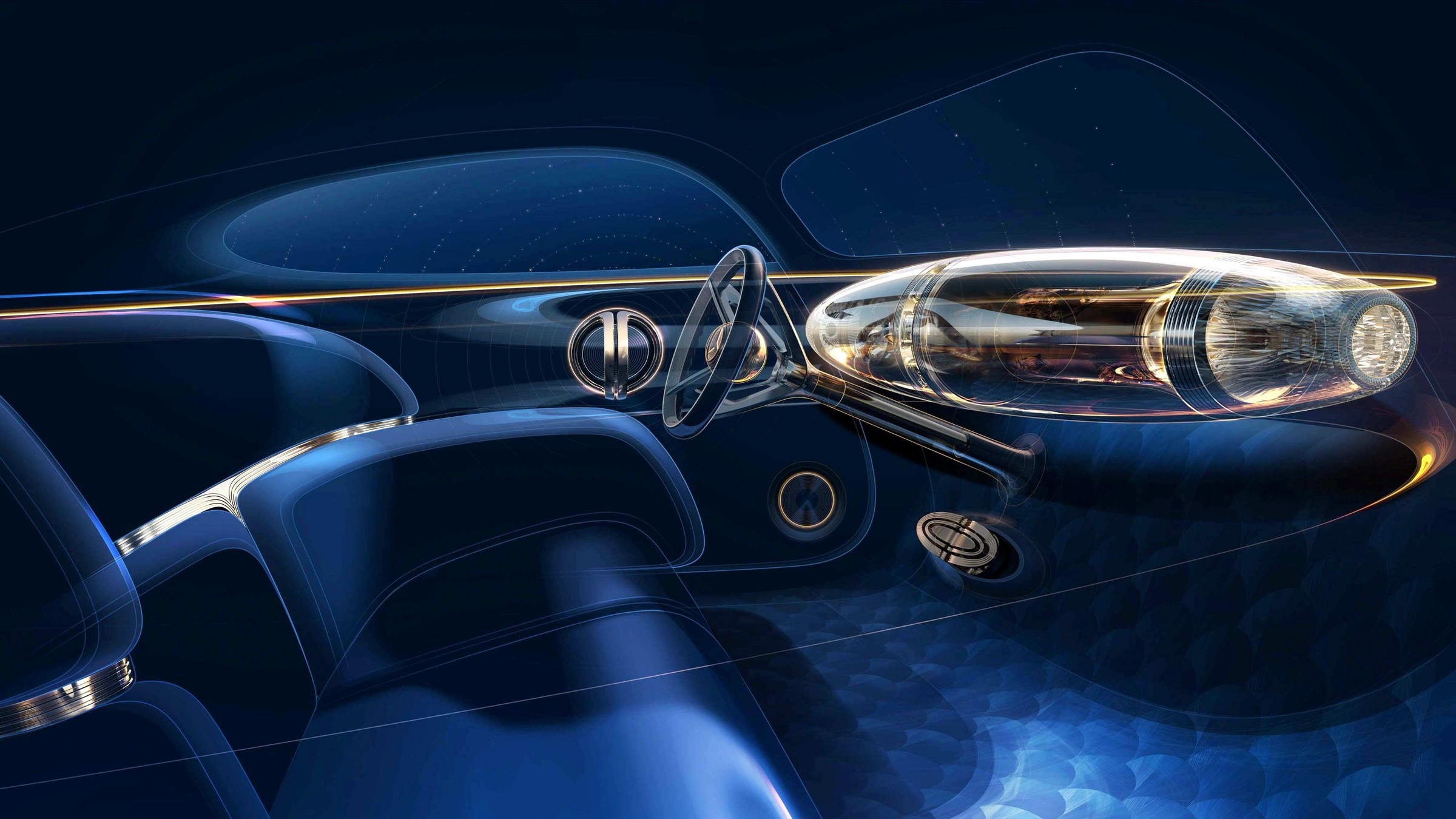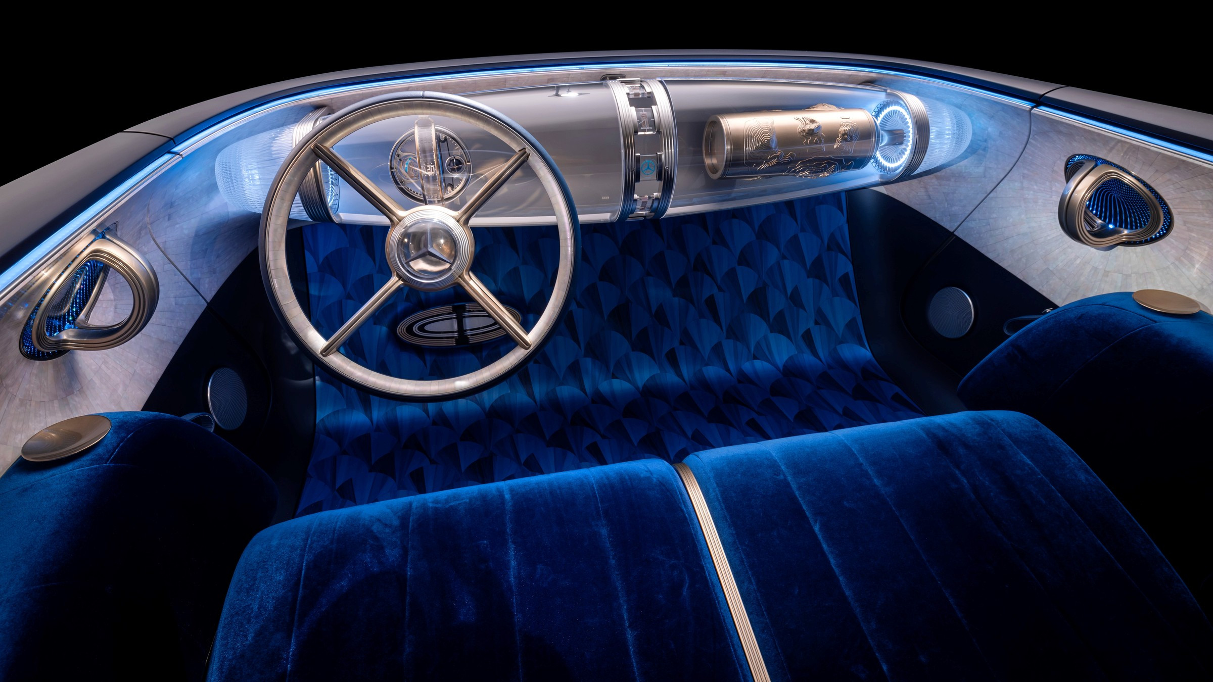 Unutrašnjost Mercedes-Benza Visiona Iconica uređena je u stilu art deco. Vozač i suvozač sede na zajedničkoj, udobnoj klupi koja podseća na nameštaj iz luksuznih hotela. Pod je ukrašen drvenim mozaikom (marketrie), dok je instrument tabla izrađena kao prozračna konstrukcija u obliku dirižabla, zbog čega nosi naziv Zeppelin. U nju su ugrađeni analogni časovnik, instrument tabla u stilu hronografa i rotirajući cilindar sa 3D projekcijama na površini, a sama konstrukcija zapravo funkcioniše kao veliki projekcioni ekran.