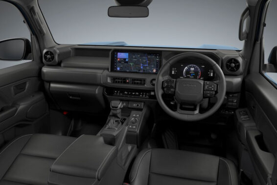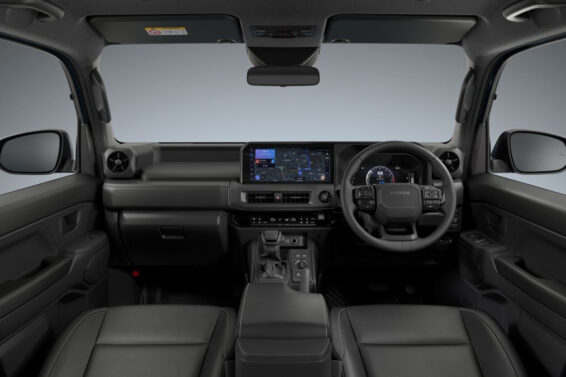 Unutrašnjost novog FJ-a dizajnirana je u sličnom, oštrougaonijem stilu, kao kod većih Land Cruisera, ali su materijali jednostavniji. Tu je volan sa tri kraka i velikim brojem fizičkih dugmića, kao i masivna ručica menjača. Gornji deo instrument table čini prostrana polica, dok su ekran multimedije i digitalni instrumenti opticki spojeni u jedan blok, iako instrument tabla ima svoj zaseban pokrov.