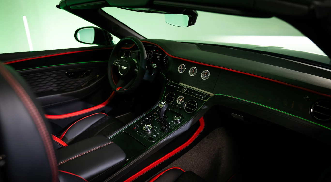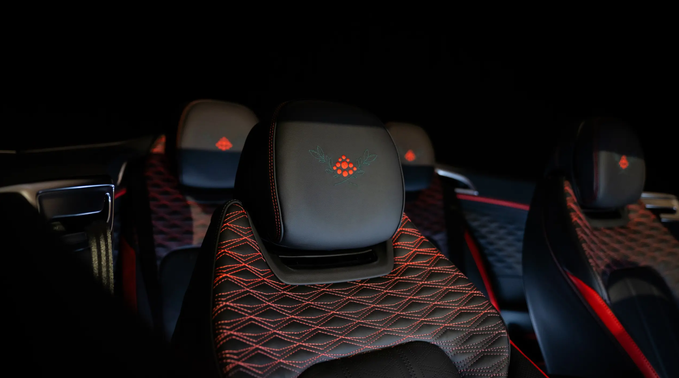 Unutrašnjost je presvučena crnom kožom sa kontrastnim štepovima, dok je instrument tabla obložena orahovim drvetom otvorenih pora, a na strani suvozača ugraviran je motiv lišća iz Švarcvalda. Sedišta krase posebni vezovi sa listovima i bobicama.