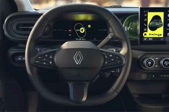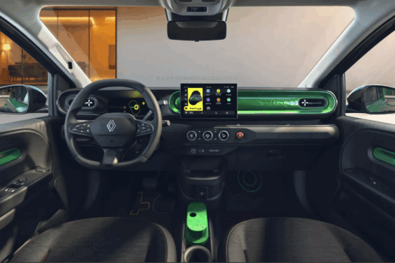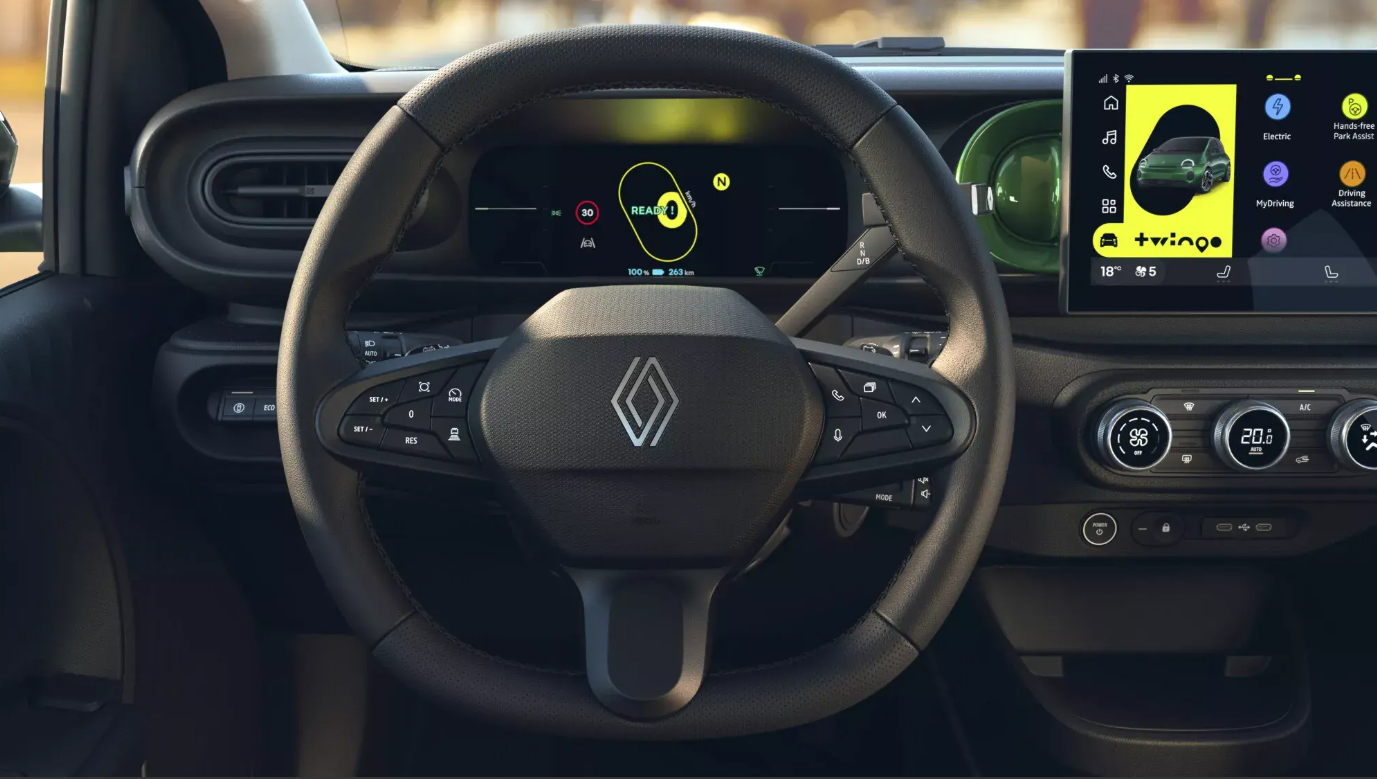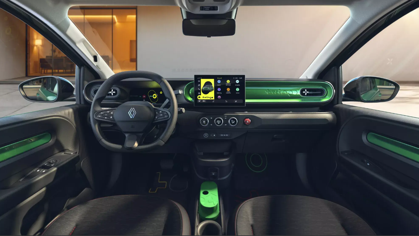 Unutrašnjost novog Twinga oslanja se na jednostavnu i funkcionalnu koncepciju. Standardna oprema uključuje 7-inčnu digitalnu instrument-tablu i 10-inčni centralni ekran multimedijalnog sistema, koji koristi Googleovu platformu sa planerom ruta za električna vozila u okviru Googleovih Mapa. Obe grafičke teme prilagođene su posebno ovom modelu.