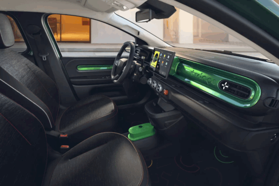 Instrument tabla sadrži obojene dekorativne elemente i klasične rotacione komande ventilacije, dok se selektor prenosa nalazi na stubu upravljača. Zanimljiv detalj predstavljaju tačke za montažu dodatne opreme nazvane YouClip, poznate iz modela marke Dacia, uz mogućnost korišćenja dodataka izrađenih 3D štampom.