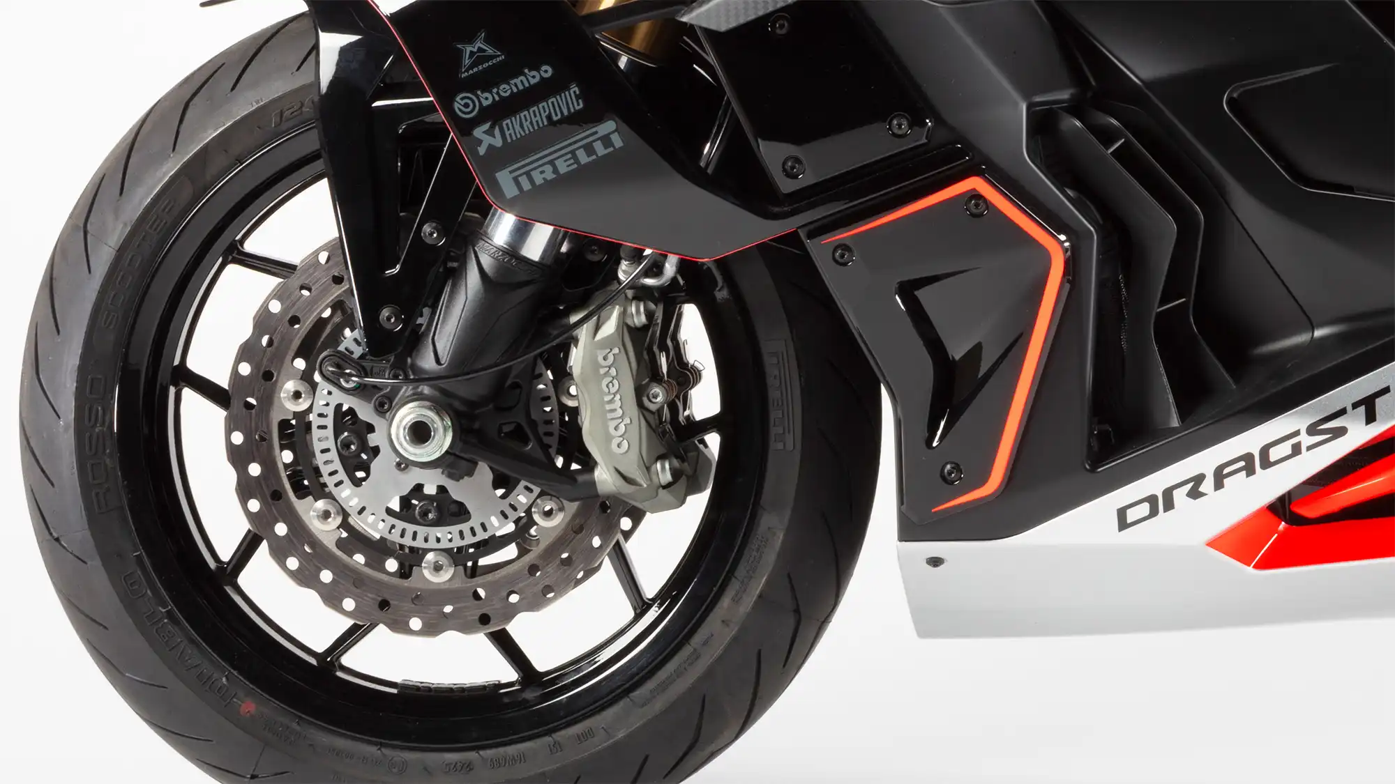 Italjet Dragster 459 Twin se kotrlja na relativno velikim, odgovarajuće stabilnim točkovima i gumama, dimenzija 120/70 ZR 15 napred i 160/60 ZR 15 pozadi. Ovo je dopunjeno dvostrukim prednjim disk kočnicama, koje, kao i zadnju disk kočnicu, nadgleda ABS. Brembo za ovu svrhu isporučuje prestižne kočne čeljusti.