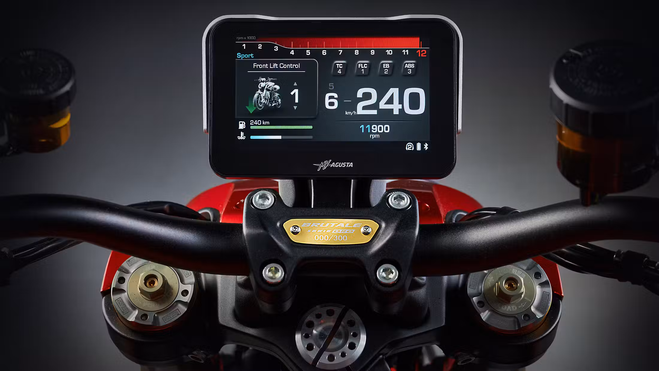 Sistem je u potpunosti kontrolisan preko novog petoinčnog TFT-a sa redizajniranim komandama na upravljaču. Dodatne karakteristike uključuju Termignonijev titanijumski sistem za odvod izduvnih gasova razvijen ekskluzivno za MV Agustu, kao i LED osvetljenje svuda nokolo motocikla, plus prednja svetla sa funkcijom skretanja.