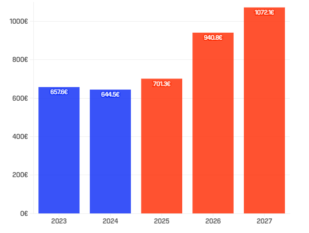 - +14% (preko milijardu evra) u 2027.