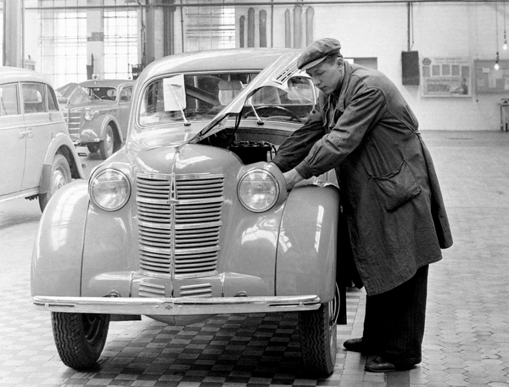 Situacija nije bila jednostavna kao što je zvučalo na prvi pogled. Fabrika u Riselshajmu je iskorišćena za proizvodnju avionskih motora i značajno oštećena tokom bombardovanja saveznika. Pored tek po koje mašinerije su preživela i tehnička rešenja Kadetta, a preživeli primerci su takođe poslati u Moskvu na detaljno testiranje, gde su rastavljeni i proučeni. Kasnije priče će reći da većina nemačke mašinerije nije bila u funkcionalnom stanju i da je novitet nastao tako što su inženjeri precrtali nemački automobil.