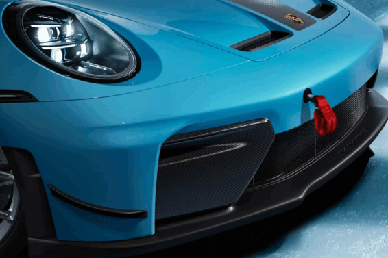 Prednji spliter produžen je za skoro 1,3 centimetra, donji deo prednjeg kraja dobio je nove aero-peraje, a branik sada ima dodatna krilca sa strane. U najagresivnijoj konfiguraciji za vožnju po javnim putevima, 911 GT3 sa Mantheyevim paketom generiše 355 kg potiska, dok u trkačkom podešavanju ta vrednost raste na 540 kg.