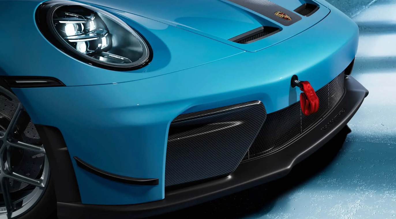 Prednji spliter produžen je za skoro 1,3 centimetra, donji deo prednjeg kraja dobio je nove aero-peraje, a branik sada ima dodatna krilca sa strane. U najagresivnijoj konfiguraciji za vožnju po javnim putevima, 911 GT3 sa Mantheyevim paketom generiše 355 kg potiska, dok u trkačkom podešavanju ta vrednost raste na 540 kg.