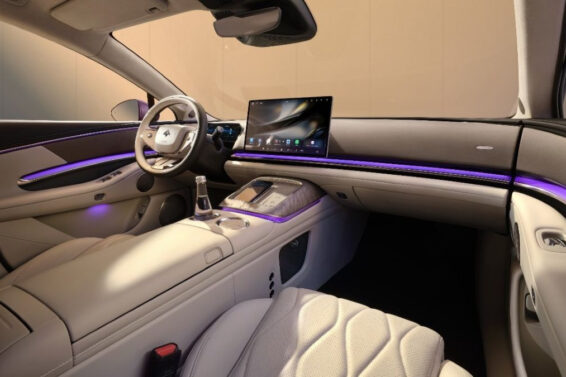 Prednja armatura i obloge vrata presvučeni su brušenom kožom (alkantara). Sva sedišta presvučena su napa kožom sa romb-štepom i opremljena grejanjem, ventilacijom, masažerom i električnim podešavanjem. Putnici pozadi imaju sopstveni dodirni panel za upravljanje dodatnim funkcijama. U opremi se nalaze dinamičko ambijentalno osvetljenje i audio sistem Infinity sa 14 zvučnika i sistemom aktivnog poništavanja buke. Navodi se da pri brzini od 120 km/h nivo buke u kabini ne prelazi 65 dB. Zapremina prtljažnika iznosi 480 litara.