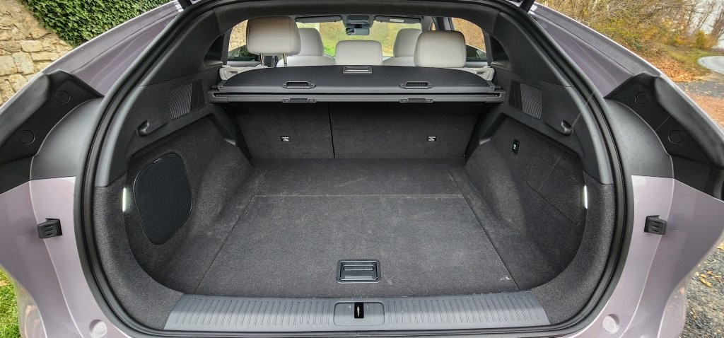 Sam pod vozila je ravan, nema uobičajnog tunela, što olakšava smeštaj treće osobe u sredini, iako se ova zbog naslona za laktove ne oseća isto toliko prijatno. Pristup prtljažniku je kroz vrata s električnom komandom, dok je zapremina od 570 lit sasvim je dovoljna za porodičnu upotrebu (1.374 po potrebi obaranju naslona). Podrazumeva se da nema rezervnog točka, u dnu je uredno složen pribor za krpljenje guma, kao i torba s kabl za punjenje.