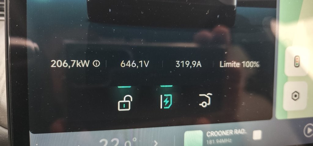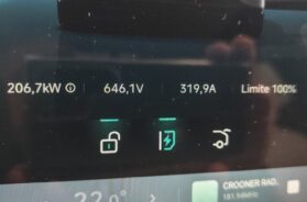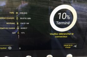 U principu punjači velike snage od 300 do 350 kW instalirani su od pre koju godinu na svim benzinskim pumpama na autoputevima, te na jedan takav zakačih moj G6, kako bih se lično uverio u brzinu punjenja, iako za tim nisam imo realne potrebe (u baterija je ostalo jos oko 40 % kapaciteta). Rezultat je frapantan, za 8 minuta „natočih“ nekih 30 kWh (prosečna snaga punjenja 217 kW), čime sam povećao autonomiju za oko 200 km. I to bez da sam aktivirao predgrejavanje baterije, što znatno ubrza punjenje.