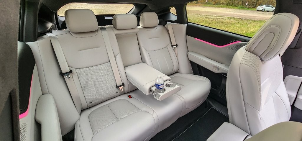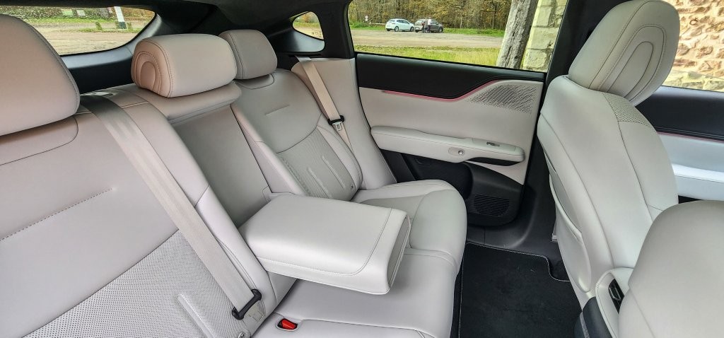 Elem, uvaljeni u udobne fotelje putnici napred imaju na raspolaganju sve što se poželeti može, pritiskom na jednu komandu na centralnom ekranu suvozačevo sedište će se recimo samostalno postaviti u „opuštenu“ poziciju (veći nagib naslona), odnosno ležeću ukoliko se želi odspavati. Testirah to na mojoj supruzi, koja se jadna uplaši da su mi na pamet pale neke perverzne ideje koje ne praktikujemo već izvesno vreme…