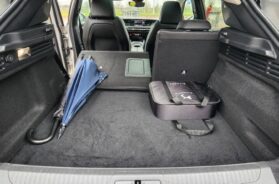 Sam prtljažnik je dostojan tog imena, za verzije s motorom SUS zapremina iznosi „lepih“ 430 lit, odnosno 390 kada se radi o voženoj električnoj verziji. Nema u dnu mesta za rezervni točak (pronađoh samo poveći bas zvučnik, odličnog Hi-Fi sitema marke Focal i pribor za opravku guma), tako da je koferče s kablom za punjenje u prtljažnom delu. Kao što i priliči jednom lukusuznom vozilu, peta vrata su s električnom asistencijom, podrazumeva se da se mogu otvoriti/zatvoriti i jednostavnim povlačenjem stopala ispod branika.