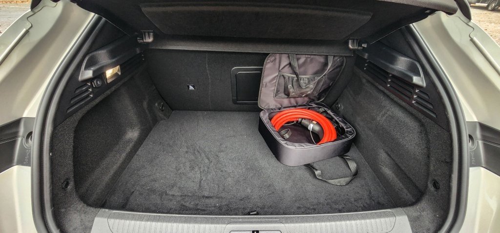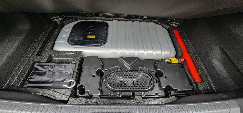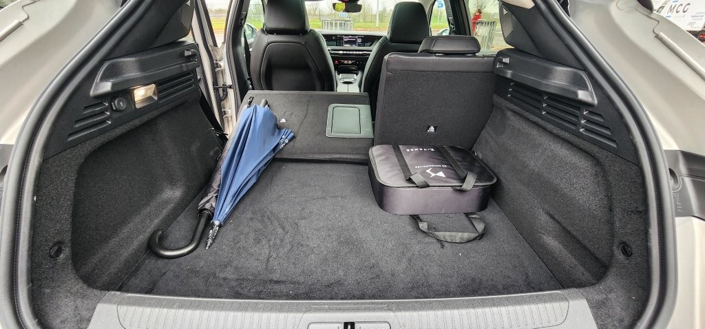 Sam prtljažnik je dostojan tog imena, za verzije s motorom SUS zapremina iznosi „lepih“ 430 lit, odnosno 390 kada se radi o voženoj električnoj verziji. Nema u dnu mesta za rezervni točak (pronađoh samo poveći bas zvučnik, odličnog Hi-Fi sitema marke Focal i pribor za opravku guma), tako da je koferče s kablom za punjenje u prtljažnom delu. Kao što i priliči jednom lukusuznom vozilu, peta vrata su s električnom asistencijom, podrazumeva se da se mogu otvoriti/zatvoriti i jednostavnim povlačenjem stopala ispod branika.