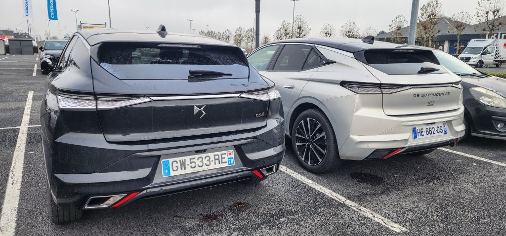 Osim što je dobio električnu verziju, novi DS N°4 može se pohvaliti i značajnim liftingom, pre svega prednjeg dela. Na jednoj fotografiji možete ga videti pored sada bivšeg DS4, razlike su lako uočljive. Nekadašnja masivna barokna maska zamenjena je elegantnijom u kojoj su sada integrisani svetleći znak DS i LED diode, uz izmenjene „kljove“ (vertikalna LED dnevna svetla).