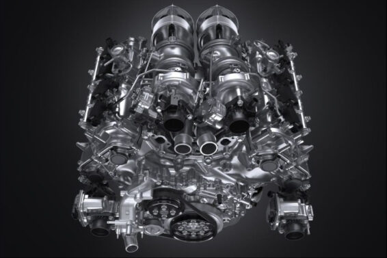 Poseduje geometriju kratkog hoda (prečnik cilindra 87,5 mm i hod 83,1 mm), što smanjuje težinu jedinice i dodatno snižava težište automobila. Ostale karakteristike uključuju sistem podmazivanja sa suvim karterom i V raspored s turbopunjačima smeštenim u V bloku. Iako tačne specifikacije motora još nisu objavljene, ciljne brojke superautomobila su već poznate. Tako raspolaže konjicom od najmanje 650 „grla“ i najvišim obrtnim momentom od najmanje 850 Nm. Procenjena maksimalna brzina je preko 320 km/h.