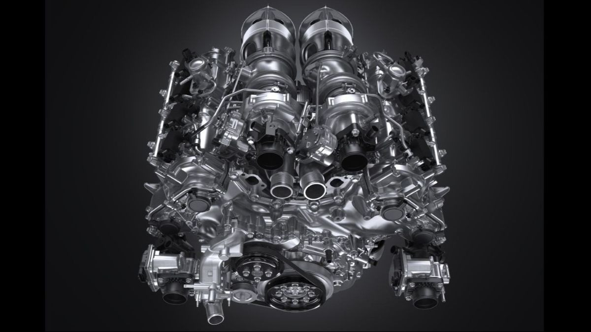 Poseduje geometriju kratkog hoda (prečnik cilindra 87,5 mm i hod 83,1 mm), što smanjuje težinu jedinice i dodatno snižava težište automobila. Ostale karakteristike uključuju sistem podmazivanja sa suvim karterom i V raspored s turbopunjačima smeštenim u V bloku. Iako tačne specifikacije motora još nisu objavljene, ciljne brojke superautomobila su već poznate. Tako raspolaže konjicom od najmanje 650 „grla“ i najvišim obrtnim momentom od najmanje 850 Nm. Procenjena maksimalna brzina je preko 320 km/h.