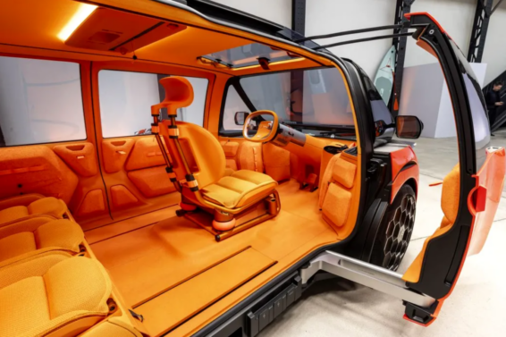 Na unutrašnjoj strani krova nalazi se i ekran/televizor. Automobil praktično nema klasičnu instrument-tablu – ispred vozača nalazi se mali displej. Volan futurističkog izgleda opremljen je sa dva tastera nalik džojsticima. U kabini se nalaze i brojni prostori za odlaganje.