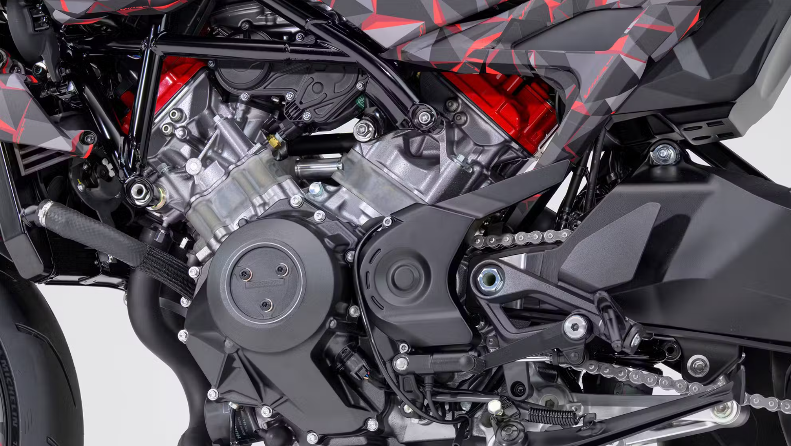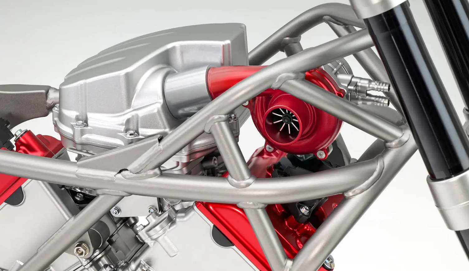 Jedini proizvođač „svetske klase“ sa pravim električnim motociklom u serijskoj proizvodnji je Honda, ali model WN7 je više prilagođen gradskim vozačima i svakodnevnim putovanjima. Koncept E-Turbo oko novog V3 motora elektrifikaciju posmatra drugačije: iako V3 ne može da radi isključivo na komprimovani vazduh, sistem obećava veliki obrtni moment i nisku potrošnju.