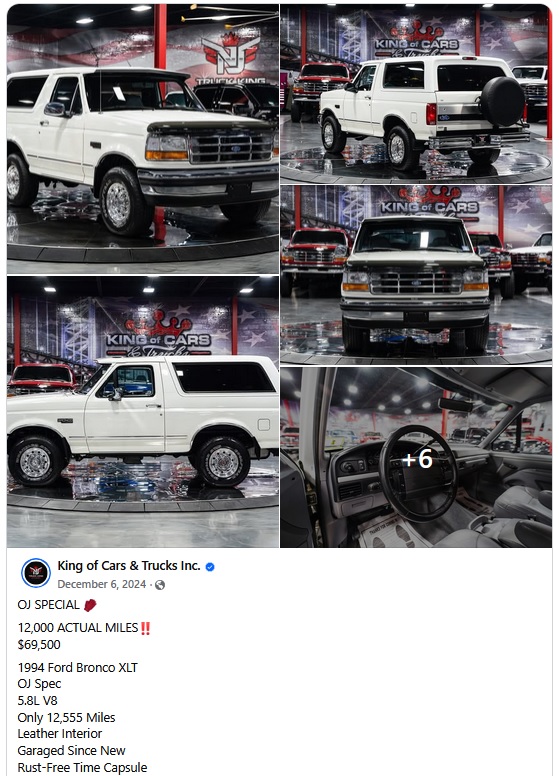 Za našu priču je ipak najbitniji Bronco to jest oba primerka, a oni i dan-danas privlače veliku pažnju. Naime, Bronco-1 u kome je pronađena krv, je brzo zaplenjen od strane policije za detaljnija testiranja, a zatim mu se gubi dalji trag. Neke priče kažu da je Ford tražio Bronco-1 nazad, a zatim ga uništio da bi sprečio loš publicitet.
