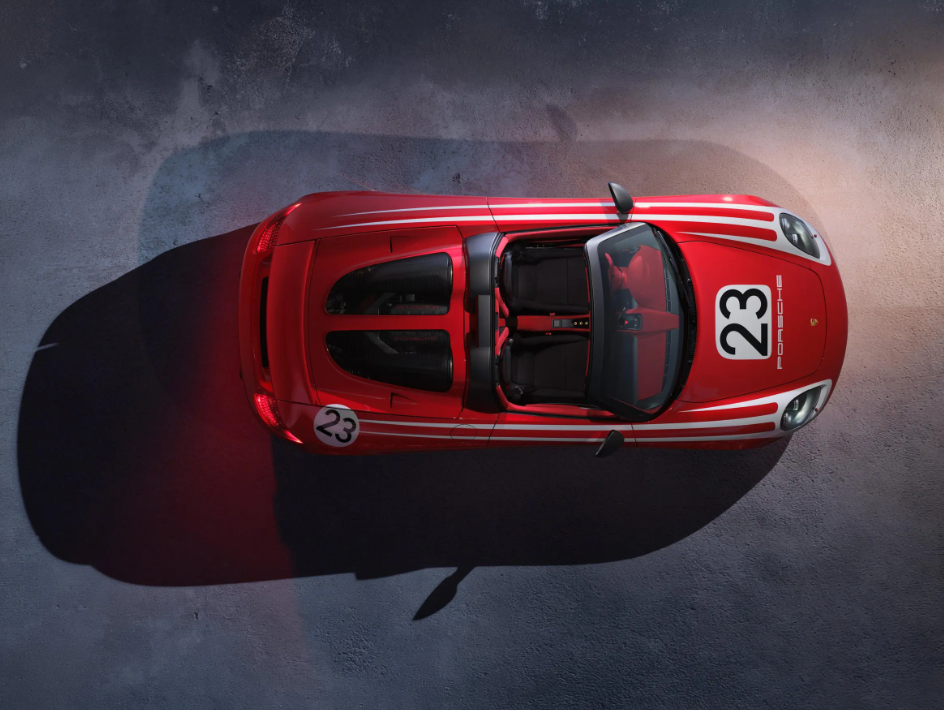Ipak, automobil danas ne izgleda isto kao pre dve decenije, kada je napustio proizvodnu traku u Lajpcigu. Vlasnik je, naime, zatražio od Porschea da promeni boju sa originalne srebrne na trkački dizajn koji podseća na pobednički model 917 sa trke 24 časa Le Mana iz 1970. godine. Trkački automobil sa brojem 23, koji su vozili Hans Herman i Ričard Atvud, nosio je boje austrijskog grada Salcburga.