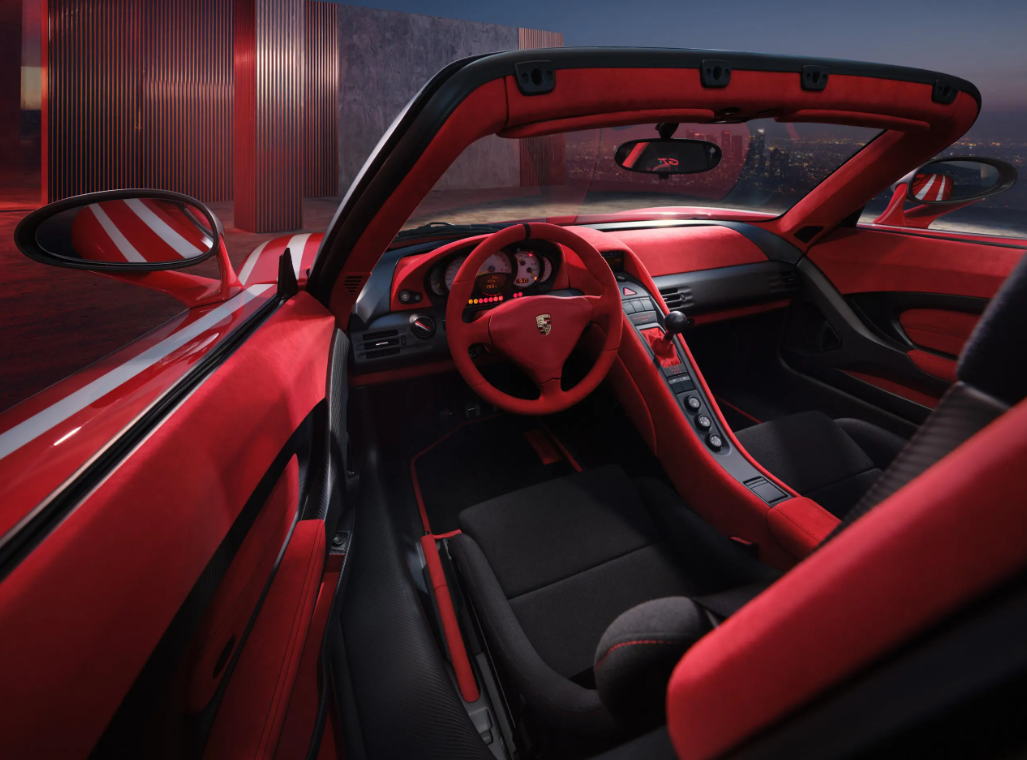 Specijalni detalji se tu ne završavaju. Na pojedinim površinama Porsche je upotrebio crnu tkaninu iz naslednika Carrere GT, modela 918 Spyder. Na drugim mestima sedišta su izrađena od mat ugljenika, koji se pojavljuje i na instrument tabli i otvorima za ventilaciju.