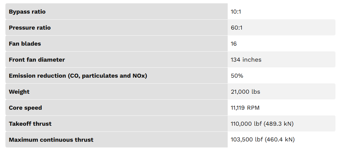 Sledeća ključna stavka je motor. Svi avioni 777X koriste motor General Electric GE9X. Proizvođač navodi da ovaj motor troši pet odsto manje goriva u odnosu na bilo koji drugi širokotrupni motor i čak 10 odsto manje u odnosu na prethodni model GE90-115B. Tome doprinose brojna poboljšanja, uključujući smanjen broj lopatica ventilatora radi boljeg protoka vazduha, manjeg otpora i nižeg nivoa buke. Motor takođe koristi keramičke kompozitne materijale, koji su lakši, bolje se hlade i dvostruko su jači od klasičnih delova.
