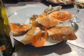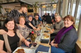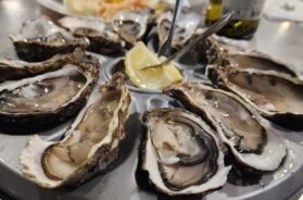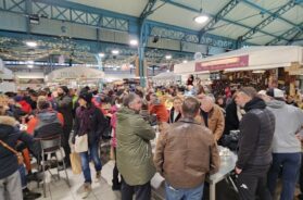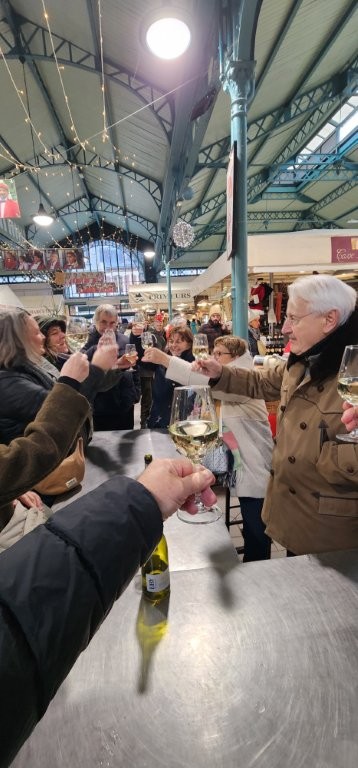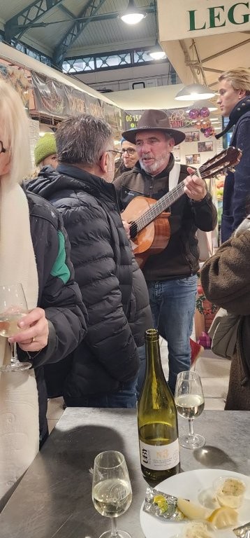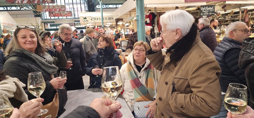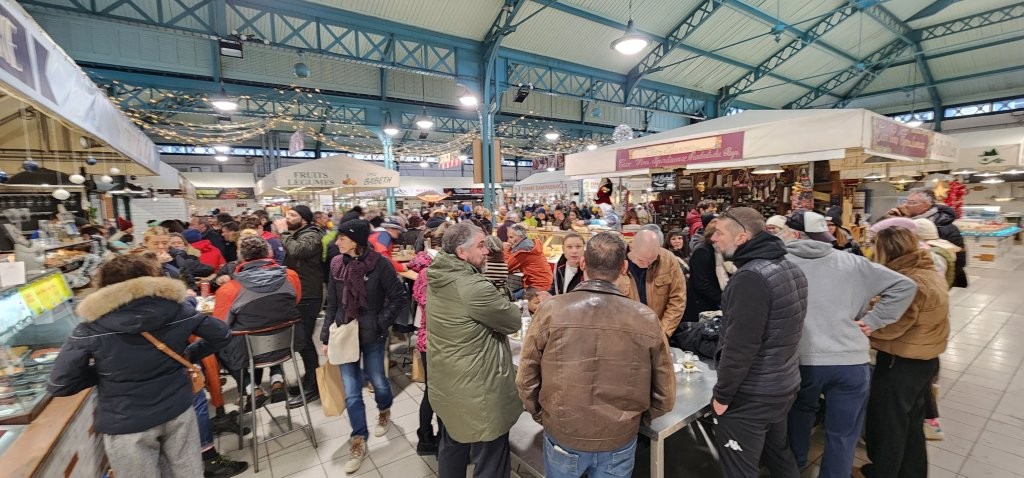 Iako je u Francuskoj trenutno velika ekonomska kriza, ne bi trebalo smetnuti s uma da je i dalje prva poljoprivredna sila u Evropi, odnosno druga u svetu. Nema šta nema na toj pijaci, a u njenom zatvorenom delu, jedna vrsta ogromnog restorana, gde se jede i pije s nogu. Nas dvadesetak (dođoše jos neki prijatelji od prijatelja), pojedosmo i popismo more belog vina, škampi, ostriga, tapasa, sardina… Sve u izvrsnom raspoloženju, na kratko zaboravih na giht! Fotografije su gore negde u galeriji.