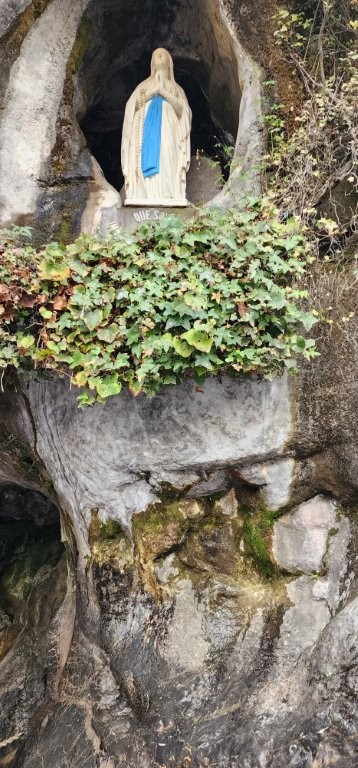 E sad ima tu čitava priča za koju nisam siguran da ste zainteresovani, zato ću da skratim, Maria-Bernade je navodno 11. februara 1858. došla u pećinu da skupi drva za vatru, kada jos se o prvi put ukaza Gospa. Tako je bilo još 16 puta i svaki put je Gospa imala neku poruku, u jednom od tih predskazanja posavetovala je Mariju-Bebade da se opere u skrivenom potoku u pećini, nakon čega je njena paralizovana ruka izlečena, da bi u poslednjem javljanju Gospa rekla kako je „bezgrešno začeta“.